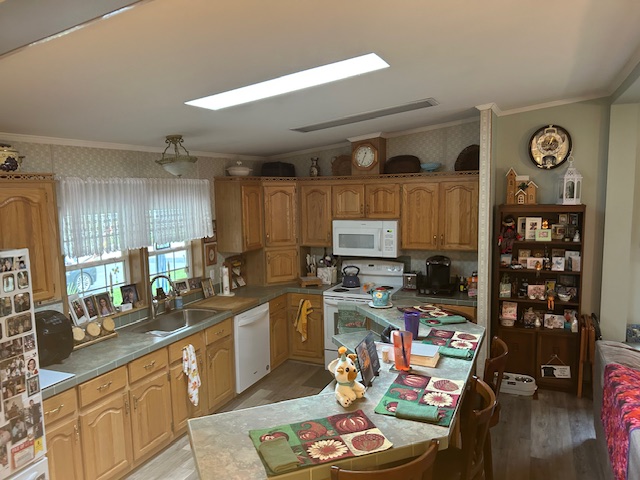 - The kitchen includes an Island with seating for several stools, Plus a new Built-In Microwave and Dishwasher