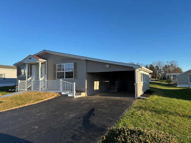 - A nicely smoothed Paved Driveway leads to an Oversized Carport with a finished Epoxy Floor